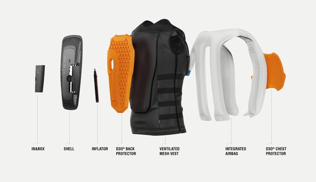 • Airbag chrání záda, krk, hruď a břicho