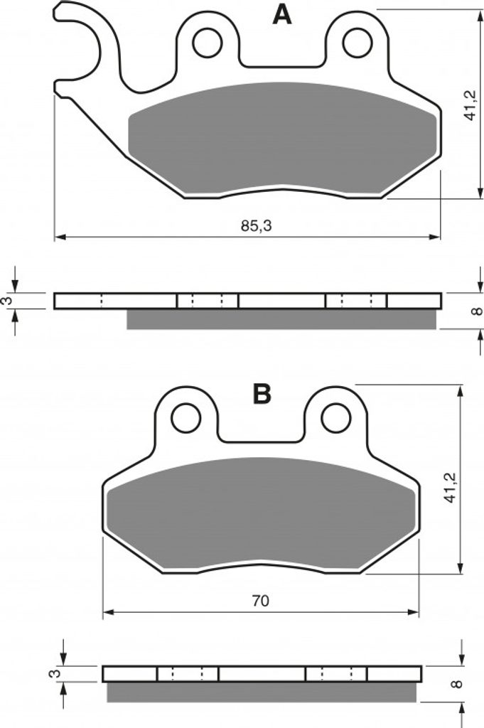 Sintrované brzdové destičky pro sportovní použití nebo těžší motocykly. Silniční typy mají homologaci TÜV.