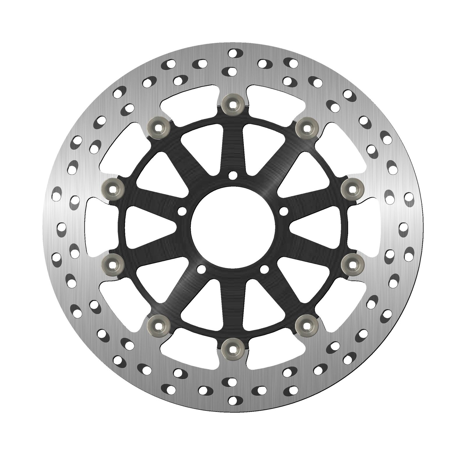 Barva brzdné plochy je výsledkem speciálního tepelného zpracování, které dodává oceli toto charakteristické duhové zbarvení, díky němuž bude váš stroj vynikat mezi ostatními. Chladící otvory nejsou orientovány vertikálně, ale horizontálně a jsou uspořádány ve skupinách po třech v každém směru. Ventilační otvory společně se speciálním tepelným zpracováním zabraňují přehřátí materiálu, které by mohlo vést k deformaci kotouče.
