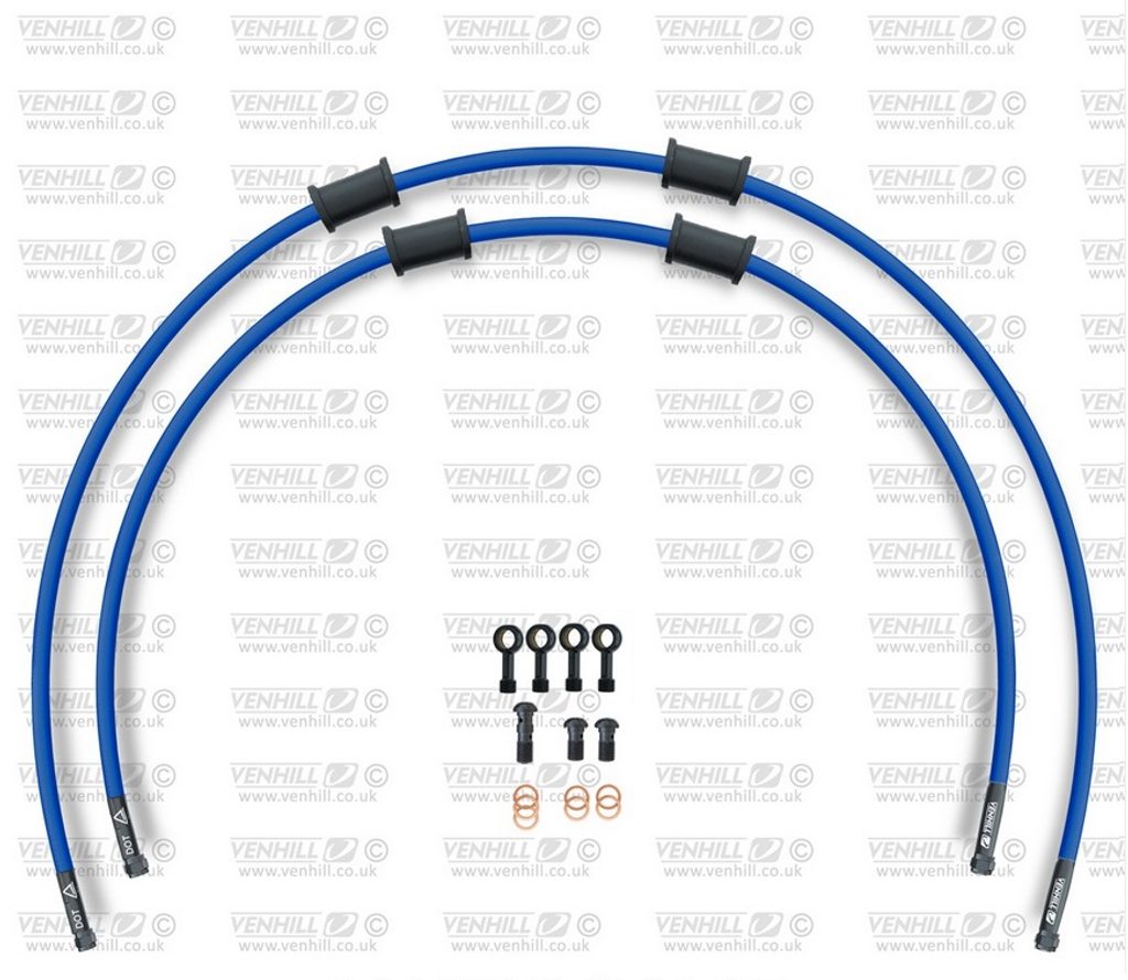 CROSSOVER Hadice přední brzdy sada Venhill POWERHOSEPLUS SUZ-7018FB-SB (2 hadice v sadě) modré hadice, černé koncovky