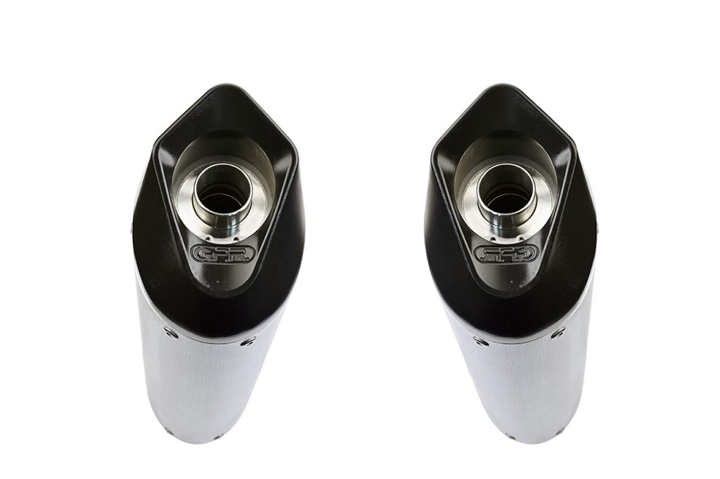Dvojitá koncovka výfuku Slip-on GPR FURORE CAT.65.1.FUNE Matná černá zahrnuje odnímatelné db killery, spojovací svody a katalyzátory