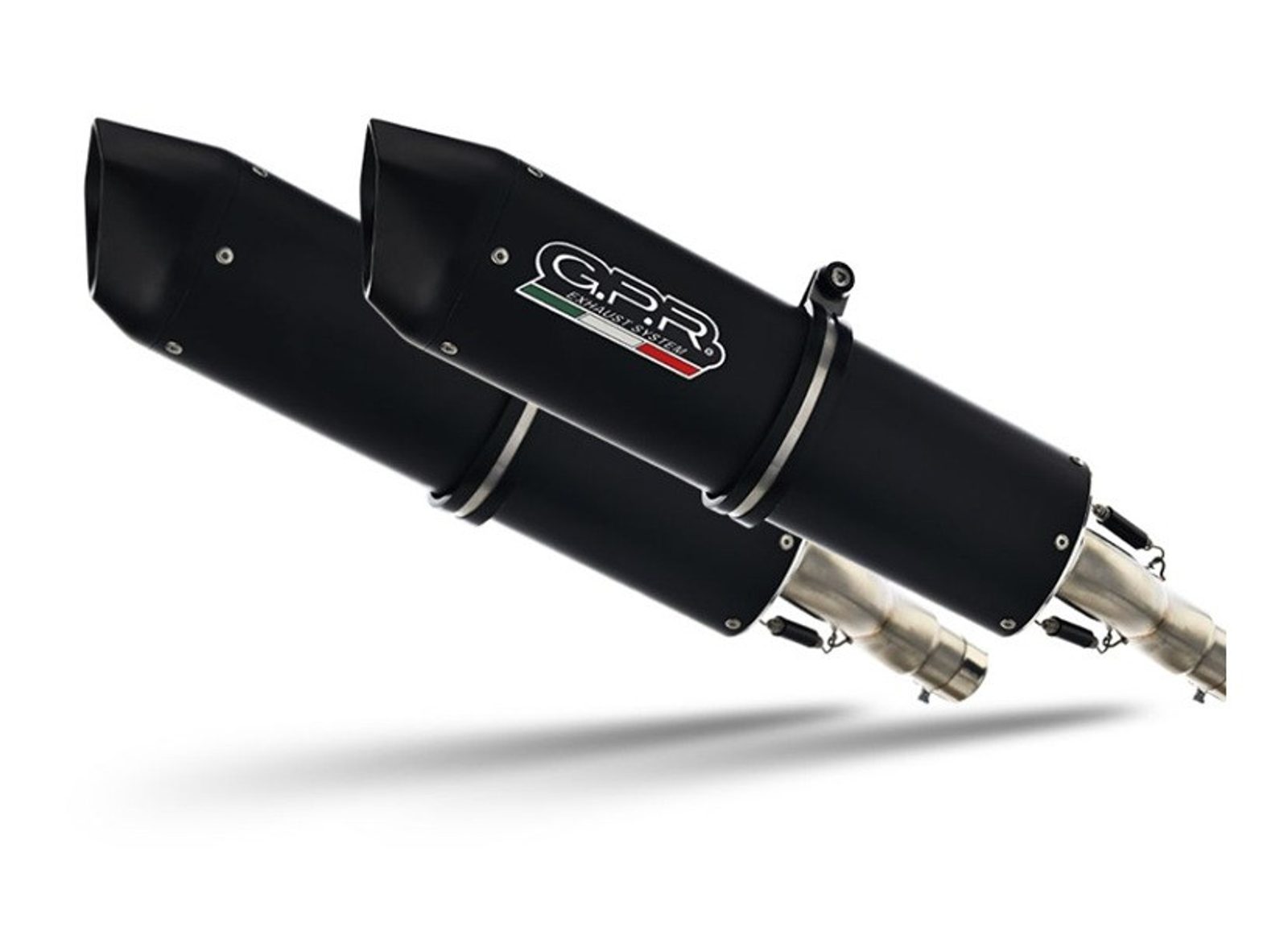 Dvojitá koncovka výfuku Slip-on GPR FURORE-X INOX K.121.CAT.FXSC Matná černá zahrnuje odnímatelné db killery, spojovací svody a katalyzátory