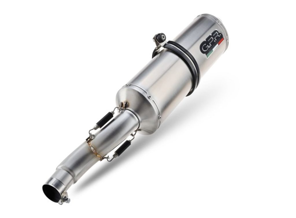 Dvojitá koncovka výfuku Slip-on GPR SATINOX D.15.3.SAT Broušená nerezová ocel zahrnuje odnímatelné dB killery a spojovací svody