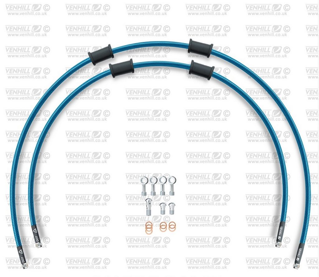 Hadice zadní brzdy Venhill POWERHOSEPLUS YAM-10031R-TB (2 hadice v sadě) průhledně modré hadice, chromové koncovky
