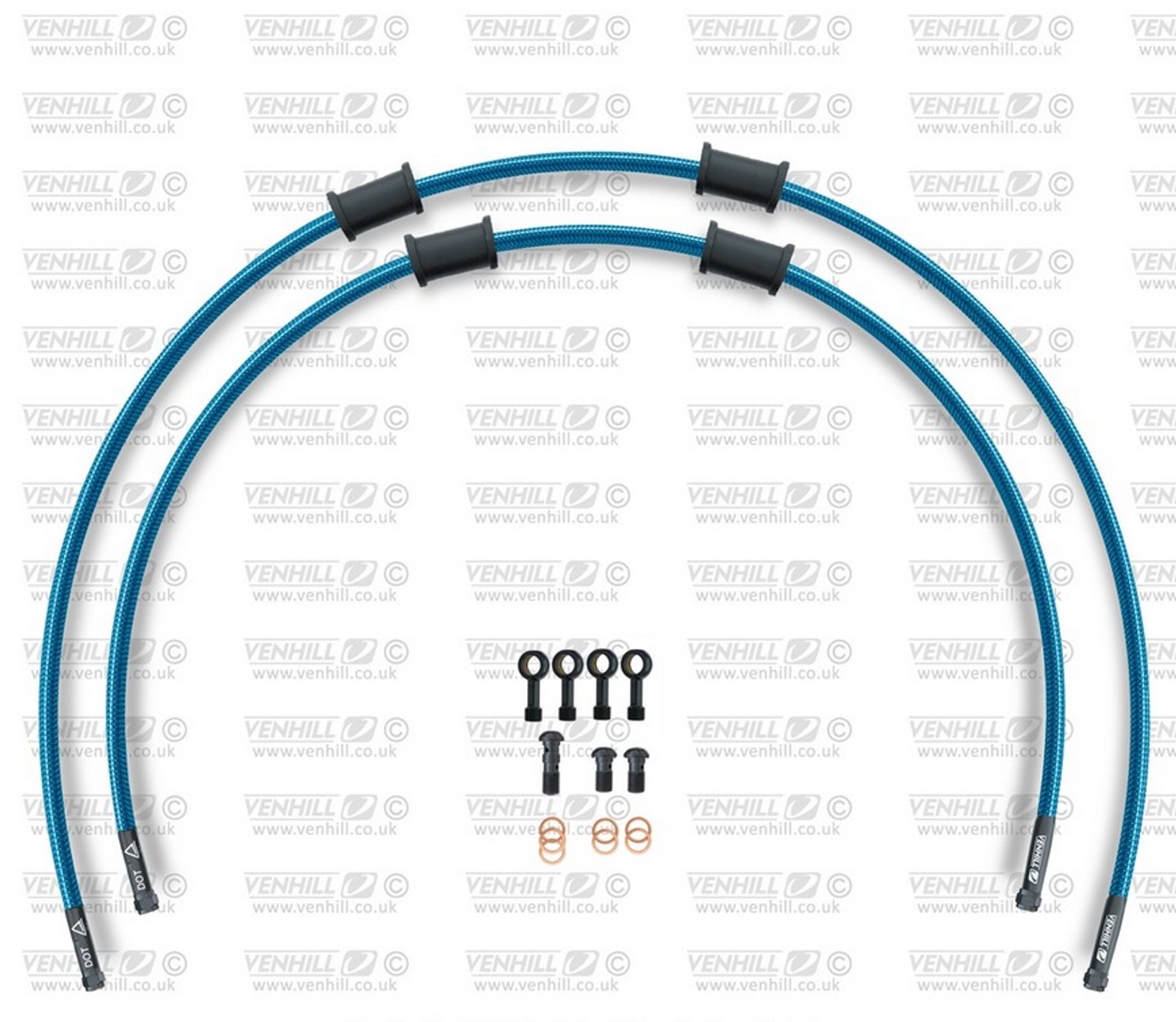 Hadice zadní brzdy Venhill POWERHOSEPLUS YAM-8009RB-TB (2 hadice v sadě) průhledně modré hadice, černé koncovky