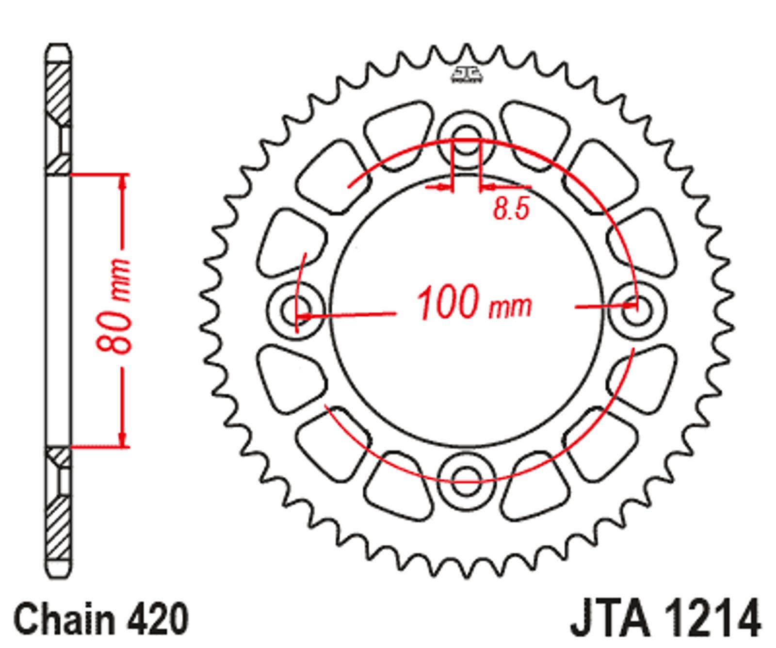 Hliníková řetězová rozeta JT JTA 1214-38RED 38 zubů, 420 červená