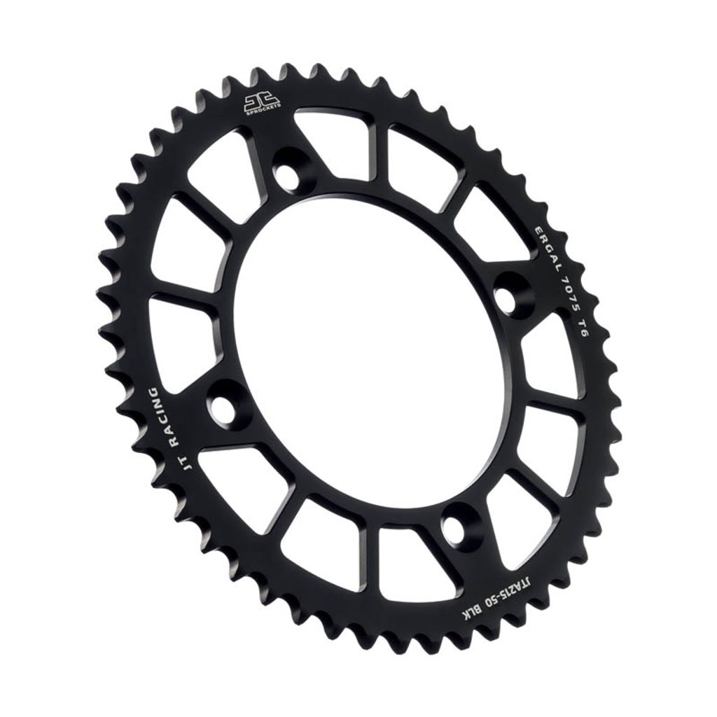 JT používá výhradně ty nejkvalitnější materiály. Pro závodní lehké rozety je to hliníková slitina letecké kvality 7075-T6, pro přední pastorky extrémně pevná slitina SCM420 (chrom-molybdenová ocel) a pro zadní ocelové rozety jako jediný výrobce používá ultra odolnou uhlíkovou ocel C49.