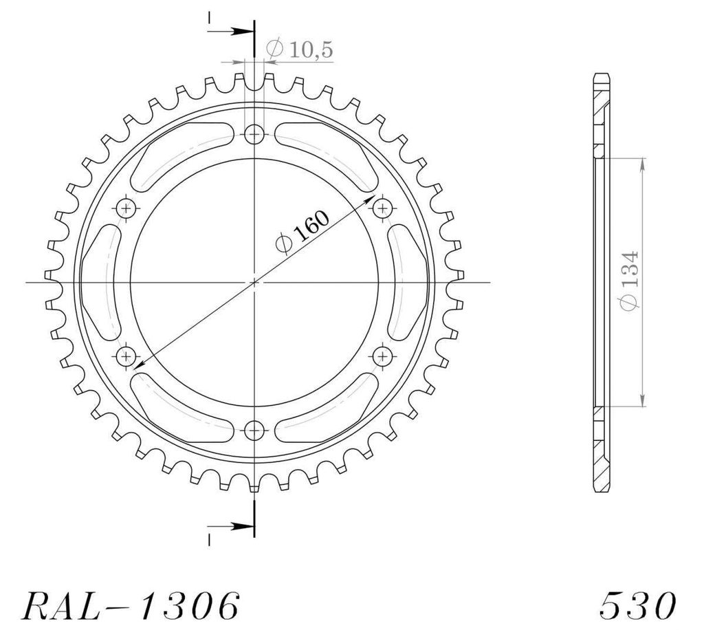 Hliníková řetězová rozeta SUPERSPROX RAL-1306:45-BLK černý 45 zubů, 530