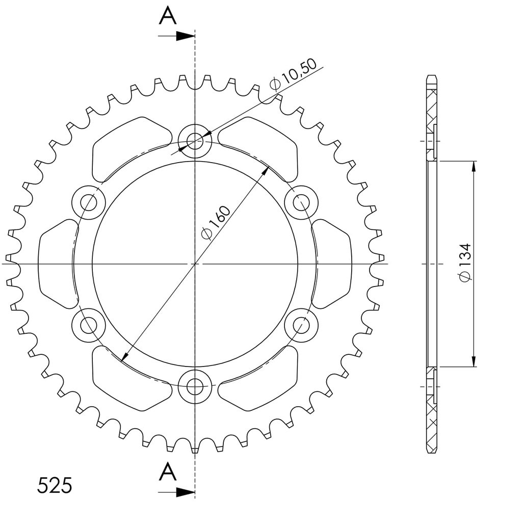 Hliníková řetězová rozeta SUPERSPROX RAL-1307:46-BLK černý 46 zubů, 525