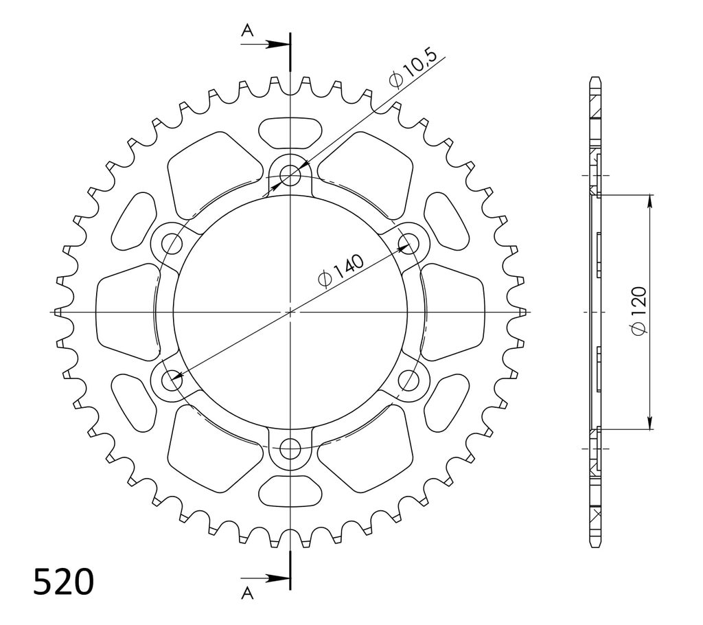 Hliníková řetězová rozeta SUPERSPROX RAL-1490:46-BLK černý 46 zubů, 520