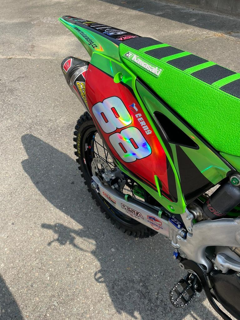 Na prodej vyladěná, vyvoněná Kawasaki KX250 F, r.v. 2016, po servisu tlumičů a komplet GO motoru (nový píst, ojnice, gufera, rozvod. řetěz, ložiska kliky, převodová kolečka, sada nerez. ventilu s pružinami), nové brzdové destičky, nova brzd. hadice Goldfren, brzdový kotouč, mnoho doplňků ZETA (víko olej. filtru, zátka oleje, držak př. brzd. hadice, kryt brzd. nádobky př.+zadni, stupačky, podložky do klem řidítek, kryt řetěz. kolečka), sada hadic modre provedení, zalamovací páčky Flex, výfuk PRO CIRCUIT, vzpěry předního zavěšení X-TRIG, nová sada kol Excel vč. nových pneu, nová rozeta, řetěz, kryt pod motor Acerbis, nový potah sedla, nové plasty vč. holografických polepů. Motorka v TOP stavu!