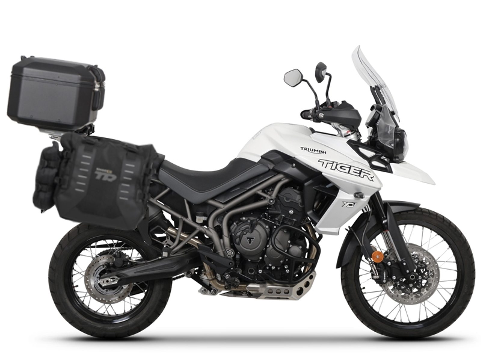 Kompletní sada bočních adventure brašen SHAD TERRA TR40 a černého hliníkového 48L topcase, včetně montážní sady SHAD TRIUMPH Tiger 800