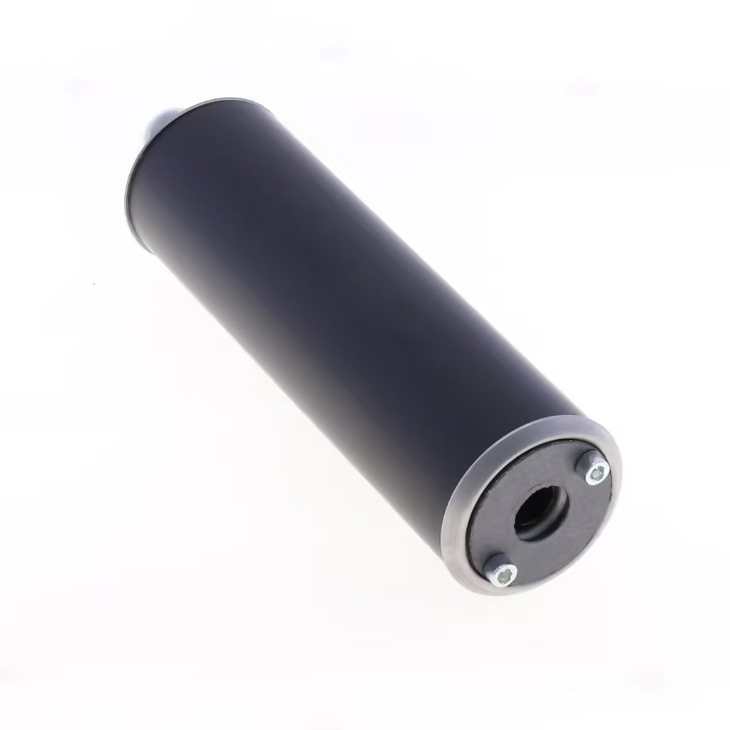 Černý hliníkový tlumič výfuku Athena je navržen pro odolnost, nízkou hmotnost a optimální výkon. S průměrem 70 mm a délkou 250 mm zajišťuje lepší pohlcování zvuku při zachování efektivního odtoku výfukových plynů.