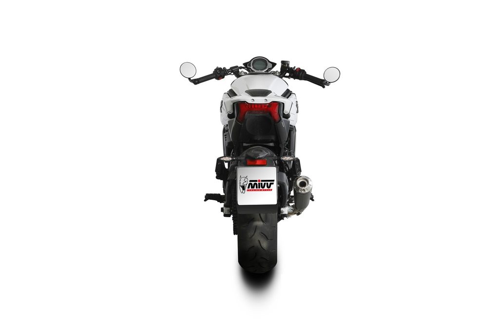 Řada MIVV X-M1, která je výsledkem zkušeností získaných v mistrovství světa MotoGP a Moto2, představuje dokonalou syntézu závodního stylu a výkonu. Tlumič X-M1 s designem podobným výfukům vyráběným pro mistrovství světa má kónický tvar a kompaktní rozměry a dokáže uvolnit podmanivý zvuk MIVV.