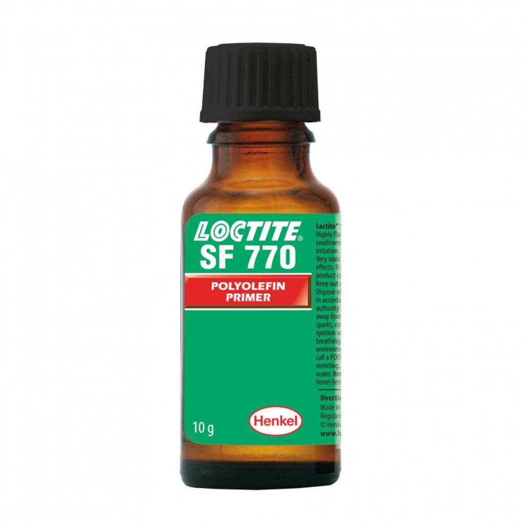 LOCTITE SF 770 je primer používaný na polyolefiny a další nízkoenergetické povrchy vhodné k lepení pomocí vteřinových lepidel LOCTITE. Vlastnosti vytvrzených vteřinových lepidlech LOCTITE na takto ošetřených plochách jsou zajištěny. Je doporučen jen na obtížně lepitelné materiály, které zahrnují polyetylen, polypropylen,polytetrafluoroetylen (PTFE) a termoplastové pryžové materiály. LOCTITE SF 770 se nedoporučuje na sestavy, kde je požadována vysoká pevnost v loupání.