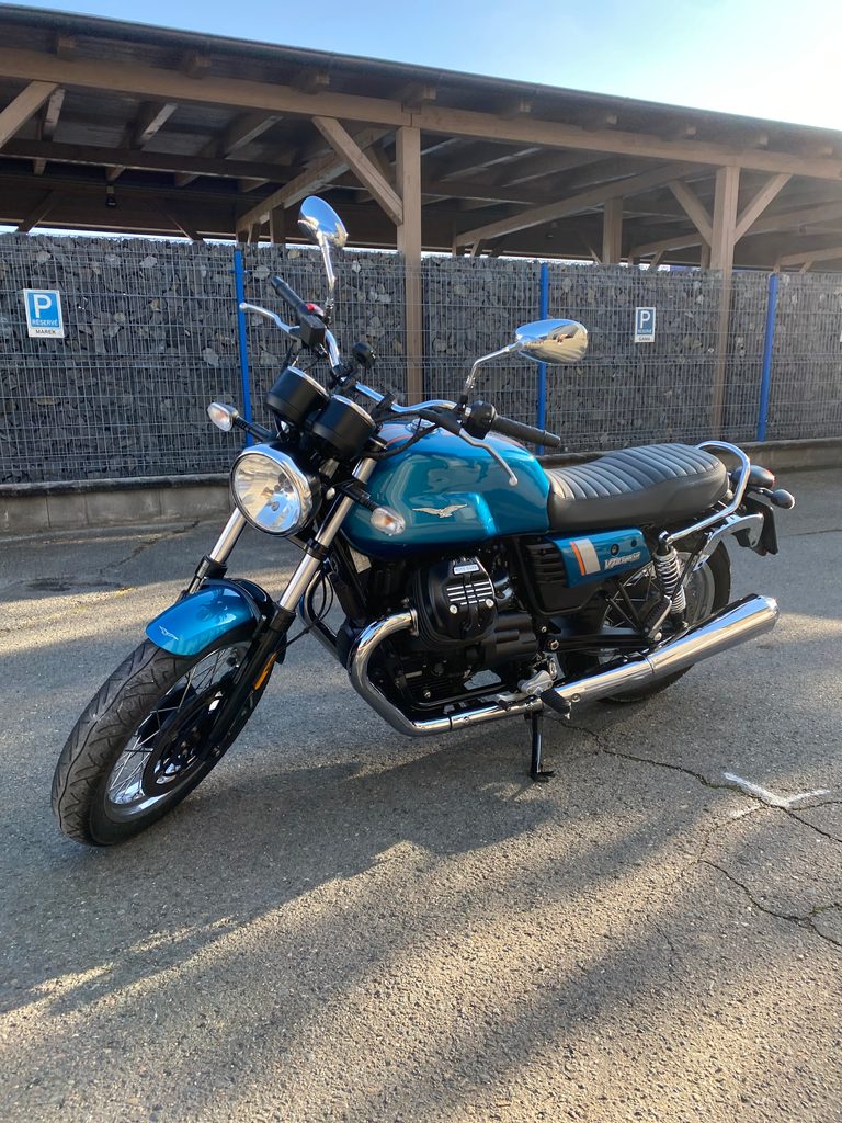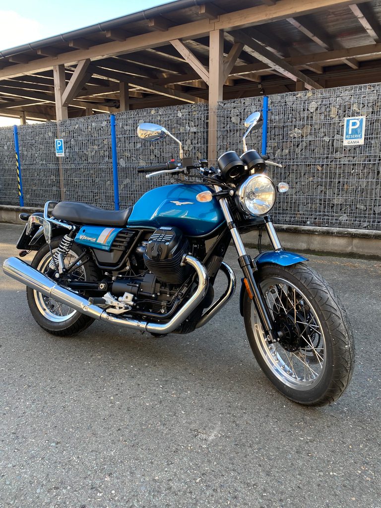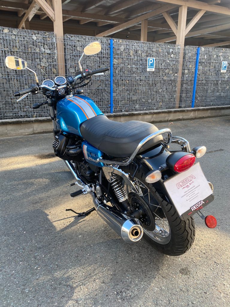 Na prodej Moto Guzzi V7 III SPECIAL, r.v. 2019, 38 kW, najeto 12108 km, ABS, STK do 09/2028, 2x klíč, servisní kniha. Klasické budíky, drátěná kola, nosiče kufrů. Krásný stav a chromy motocyklu.
