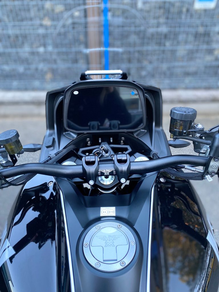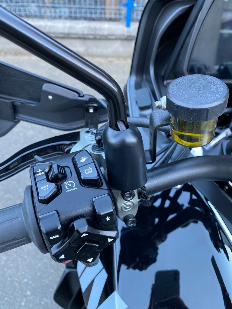 7“ TFT displej, obousměrné rychlořazení, centrální stojan, třístupňové vyhřívání rukojetí chráněných velkoplošnými blástry, vyhřívaná sedla řidiče i spolujezdce, jednou rukou nastavitelné plexi, tempomat, senzory tlaku v pneumatikách nebo zadní radar varující světýlky v zrcátkách před vozidlem v mrtvém úhlu. A to není vše, displej umí i integrovanou navigaci prostřednictvím appky pro iOS i Android, jsou tady také dva USB porty (A a C), přisvěcování do zatáček nebo přední kamera nahrávající nepřetržitě až 15 hodin záznamu.