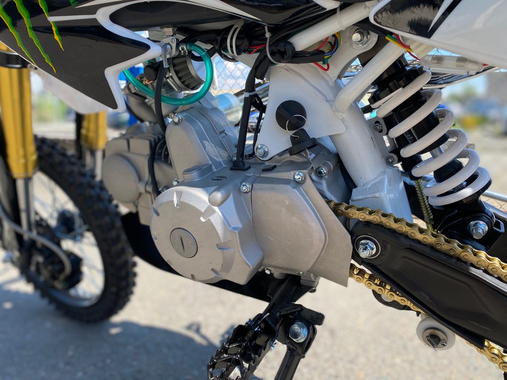 Pitbike CRF50 s klasickým ležatým motorem YX125cc (7.6kW) je vybaven 14" pneumatikami vpředu a vzadu 12", automatickou převodovkou, elektrickým startérem, kvalitními Upside-down vidlicemi a nastavitelným zadním tlumičem a inovovanou výfukovou koncovkou. Geometrie tohoto stroje pochází z Hondy CRF50. Vhodný je pro jezdce s výškou od 130cm do 150cm