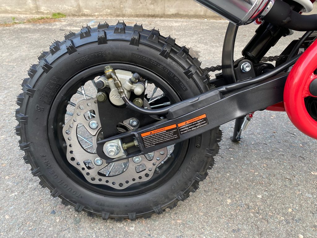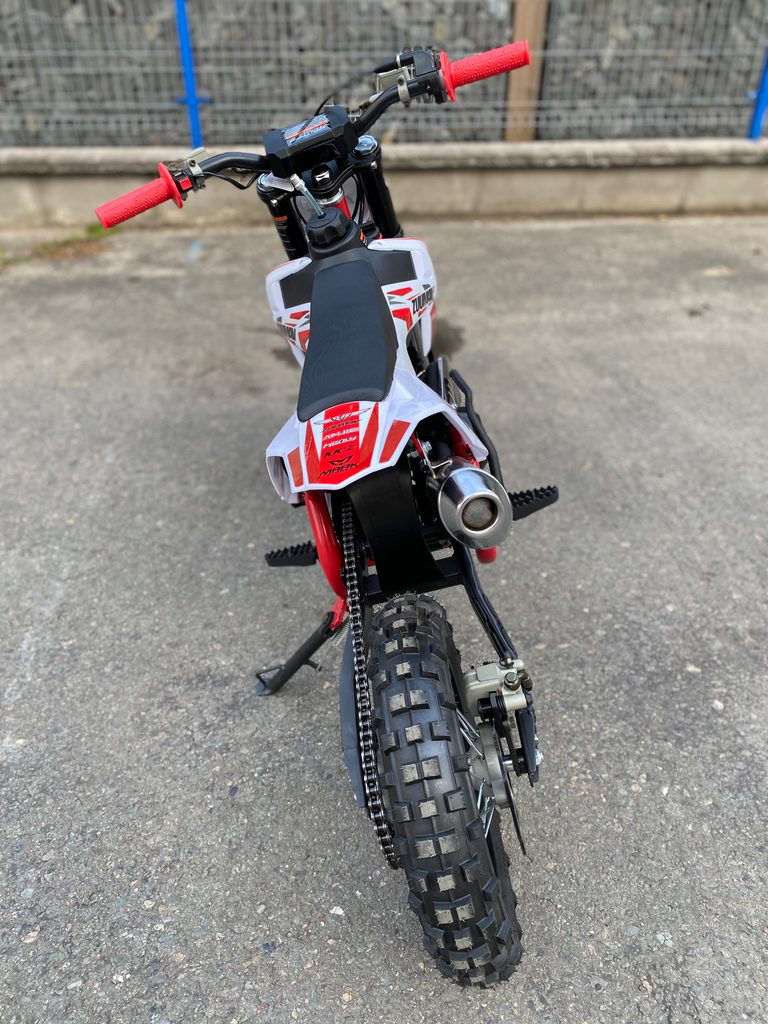 Motocykl Zuumav K1 110cc kola 12/10. Motocykl je určen pro začínající nadšence motosportu. Tento pitbike je automat se 4mi rychlostmi, dá se jednoduše přemodyfikovat na úplný automat. Motor má obsah 110ccm, který je pro malé jezdce zárukou dostatečného výkonu i v terénu, ale zároveň také snadné ovladatelnosti. Velice kvalitní přední vidlice (hydraulické), přední i zadní hydraulická brzda, motokrosová kola, kvalitní výfuk, kvalitní polepy a mnoho dalšího.