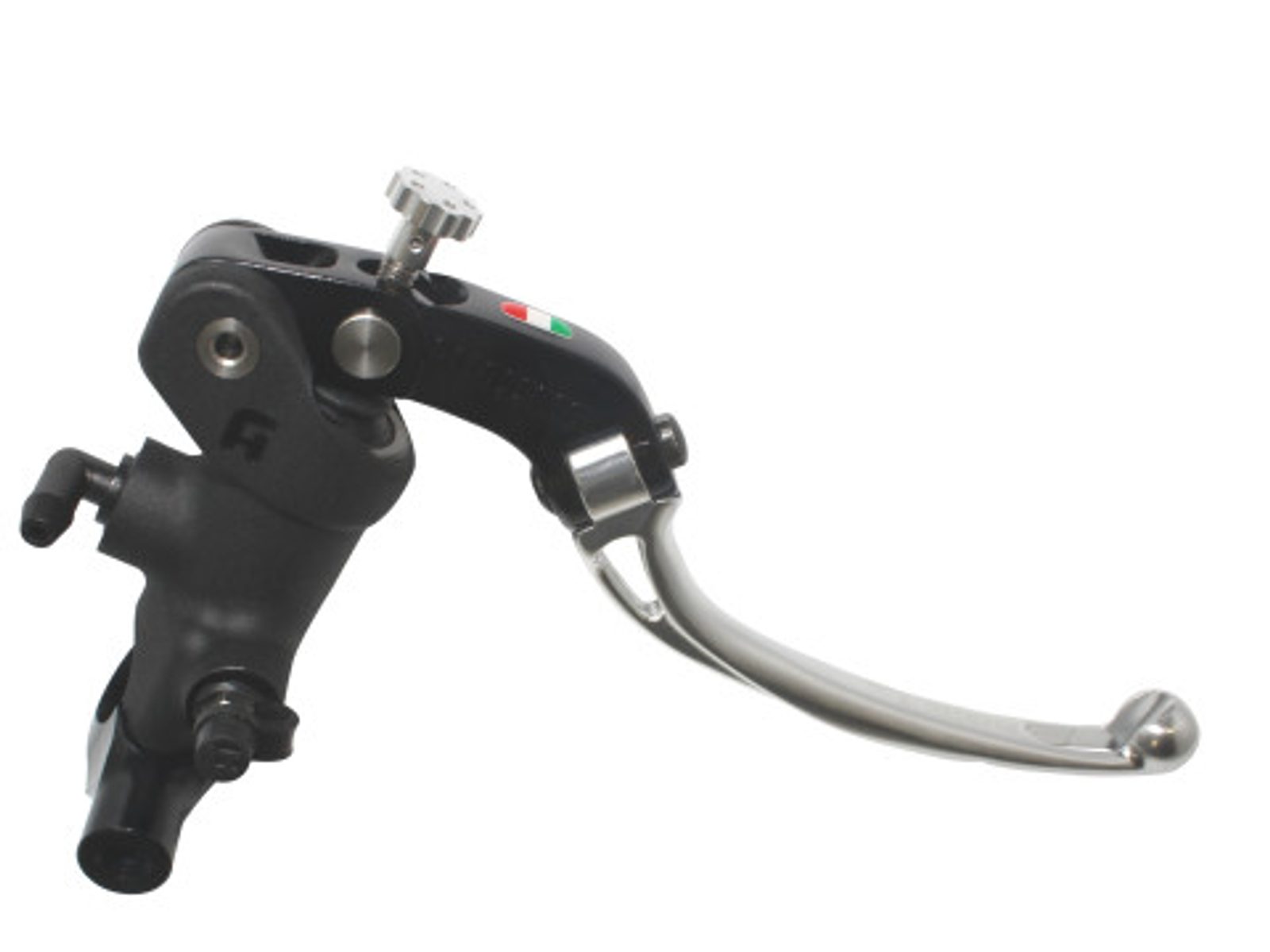 Radiální hlavní brzdový válec ACCOSSATO 19 x 19 se sklápěcí páčkou, stříbrný