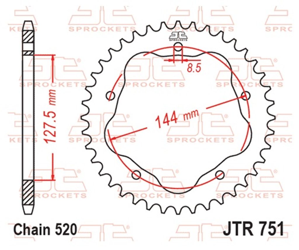 Ocelová rozeta JTR 751-38, vyžaduje unašeč A 750B, 38 zubů, pro řetěz 520 Více informací