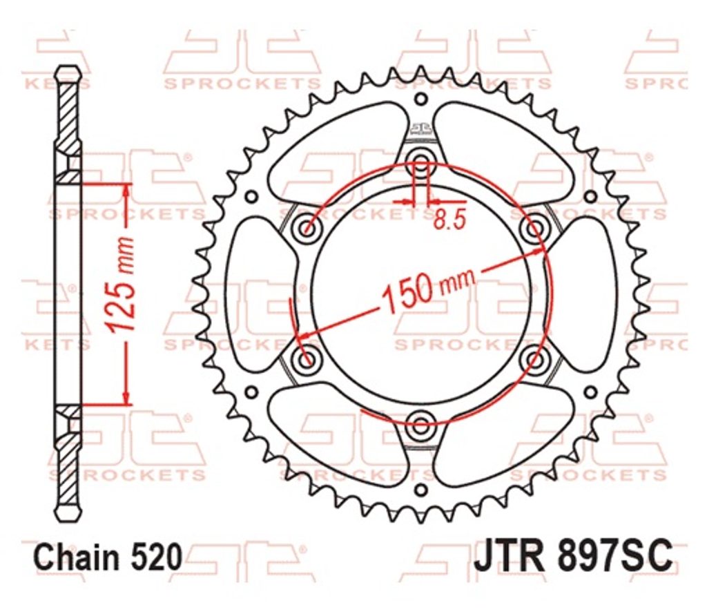 Řetězová rozeta JT JTR 897-40SC 40 zubů, 520 Samočistící, Nízká hmotnost
