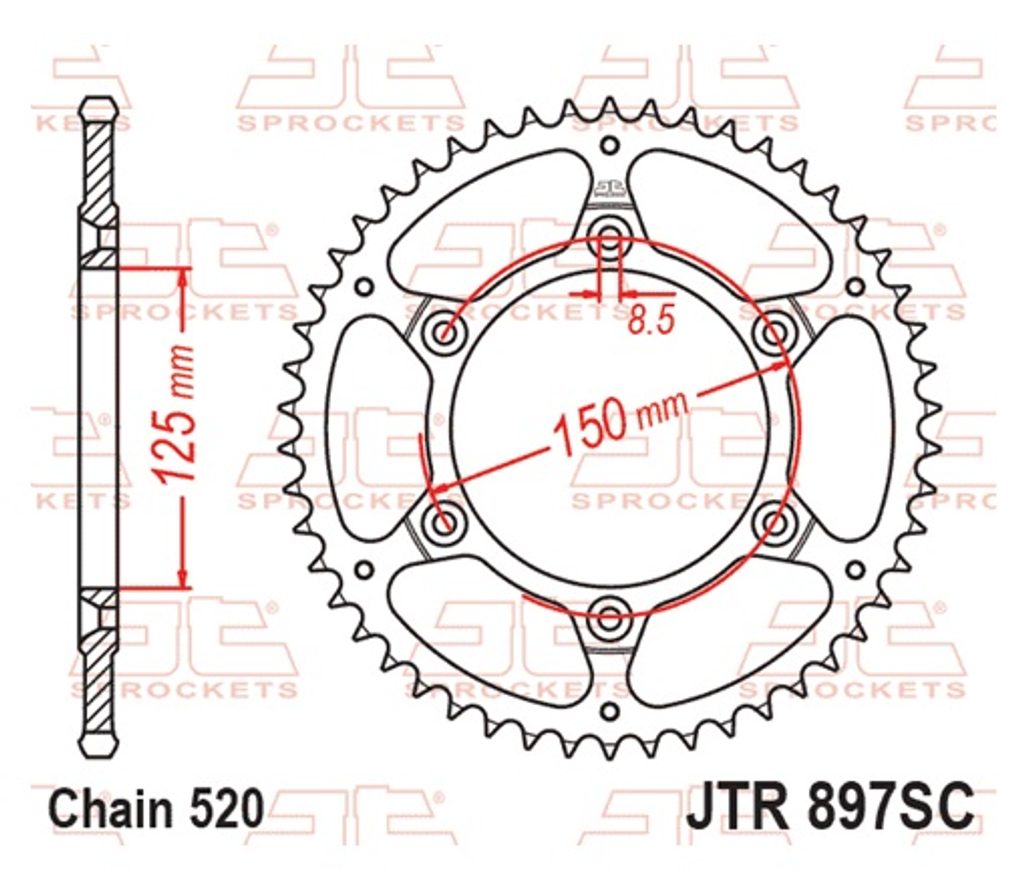 Řetězová rozeta JT JTR 897-52SC 52 zubů, 520 Samočistící, Nízká hmotnost
