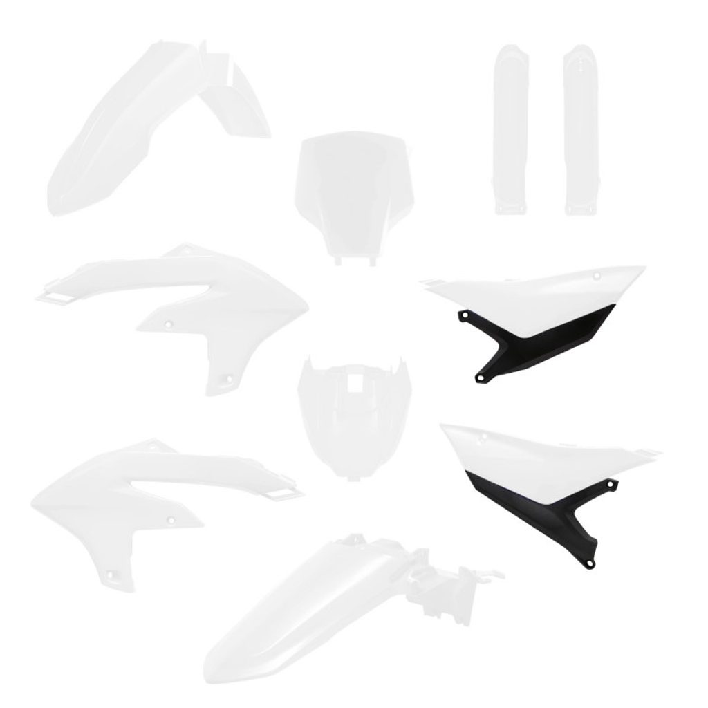 Obsahuje všechny díly pro kompletní výměnu. Kompletní plastové sady od společnosti Polisport zajišťují dokonalé přizpůsobení a kvalitu OEM na vašem motokrosovém motocyklu. Jsou vyrobeny z odolných, flexibilních a pevně odolných materiálů, které zvládnou i ty nejnáročnější podmínky při off-road jízdě.
