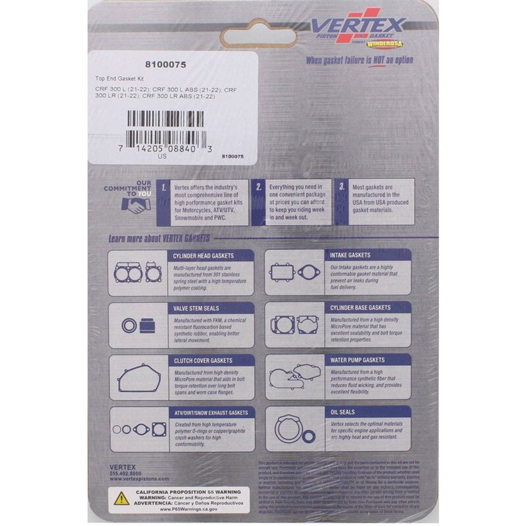 Vertex Top End Gasket Kit, ea, 1