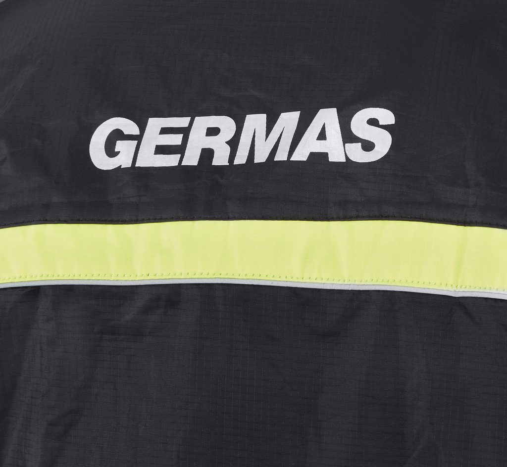• Bunda: Elastické manžety na rukávech, stahovací šňůrka k utěsnění bundy v pase. Barevný pruh a reflexní potisk na zádech pro lepší viditelnost.