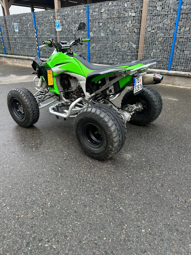 Na prodej sportovní čtyřkolka Kawasaki KFX450R na papírech, r.v. 2008, STK do 11/2026, laděný výfuk Doma racing, po servisu - nový olej + olej. filtr, akumulátor, nová zap. svíčka.