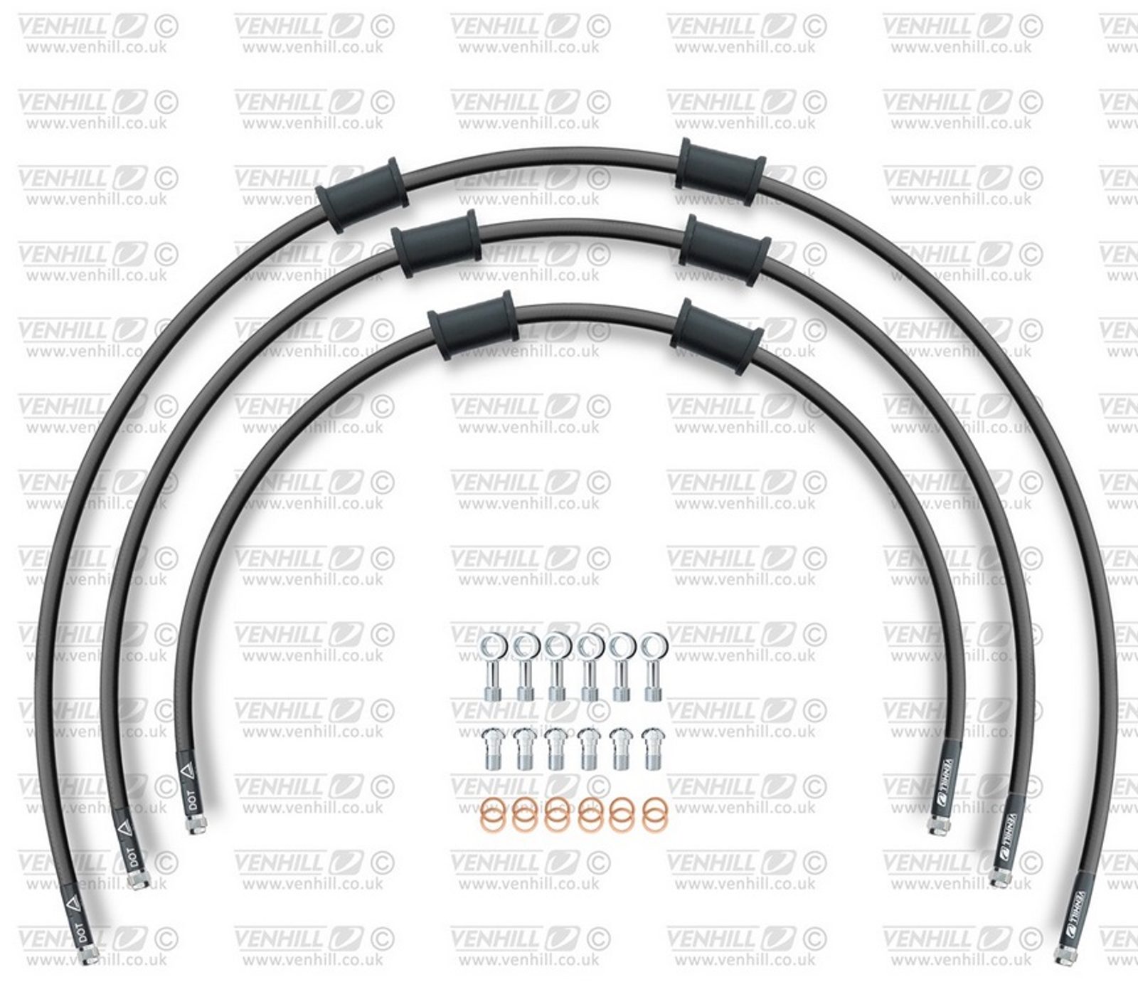 STANDARD Hadice přední brzdy sada Venhill POWERHOSEPLUS HON-1001FS-BK (3 hadice v sadě) černé hadice, nerezové koncovky
