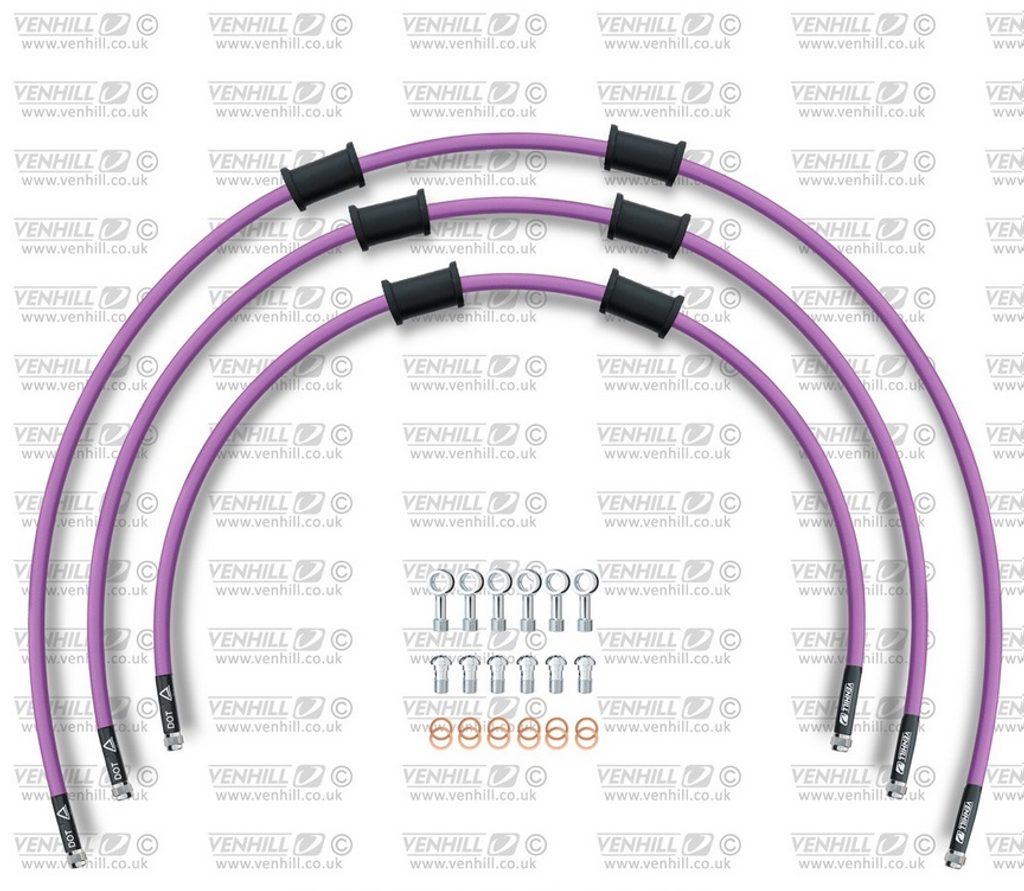 STANDARD Hadice přední brzdy sada Venhill POWERHOSEPLUS HON-5008F-PU (3 hadice v sadě) fialové hadice, chromové koncovky