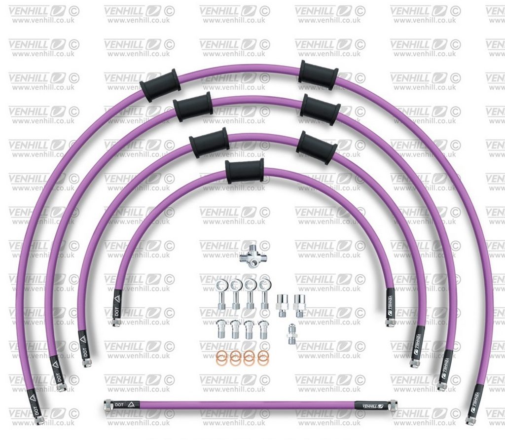 STANDARD Hadice přední brzdy sada Venhill POWERHOSEPLUS KAW-10006F-PU (5hadic v sadě) fialové hadice, chromové koncovky