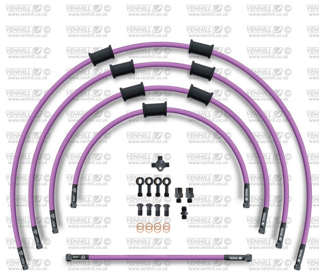 STANDARD Hadice přední brzdy sada Venhill POWERHOSEPLUS KAW-11006FB-PU (3 hadice v sadě) fialové hadice, černé koncovky