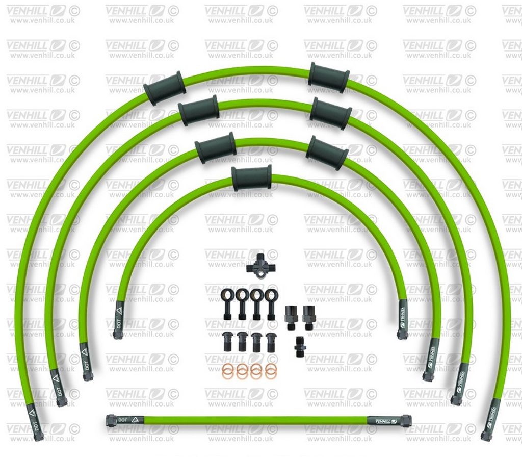 STANDARD Hadice přední brzdy sada Venhill POWERHOSEPLUS KAW-7002FB-GR (5hadic v sadě) zelené hadice, černé koncovky