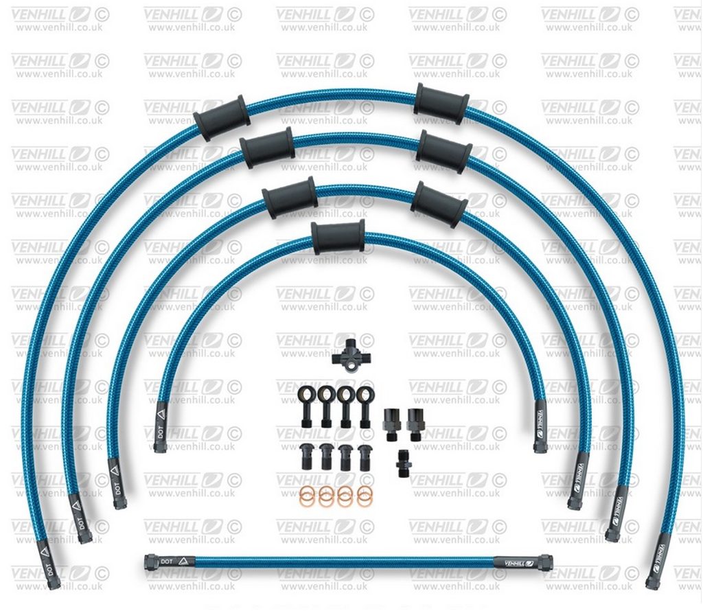 STANDARD Hadice přední brzdy sada Venhill POWERHOSEPLUS KAW-7004FB-TB (5hadic v sadě) průhledně modré hadice, černé koncovky