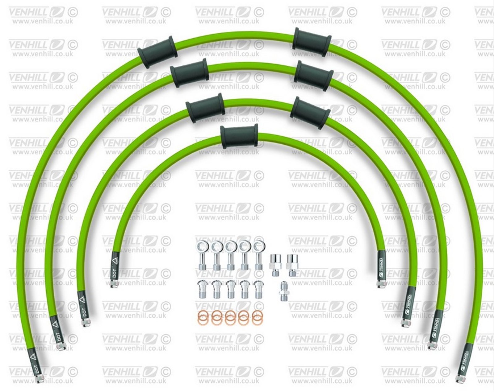 STANDARD Hadice přední brzdy sada Venhill POWERHOSEPLUS SUZ-5004FS-GR (4 hadice v sadě) zelené hadice, nerezové koncovky