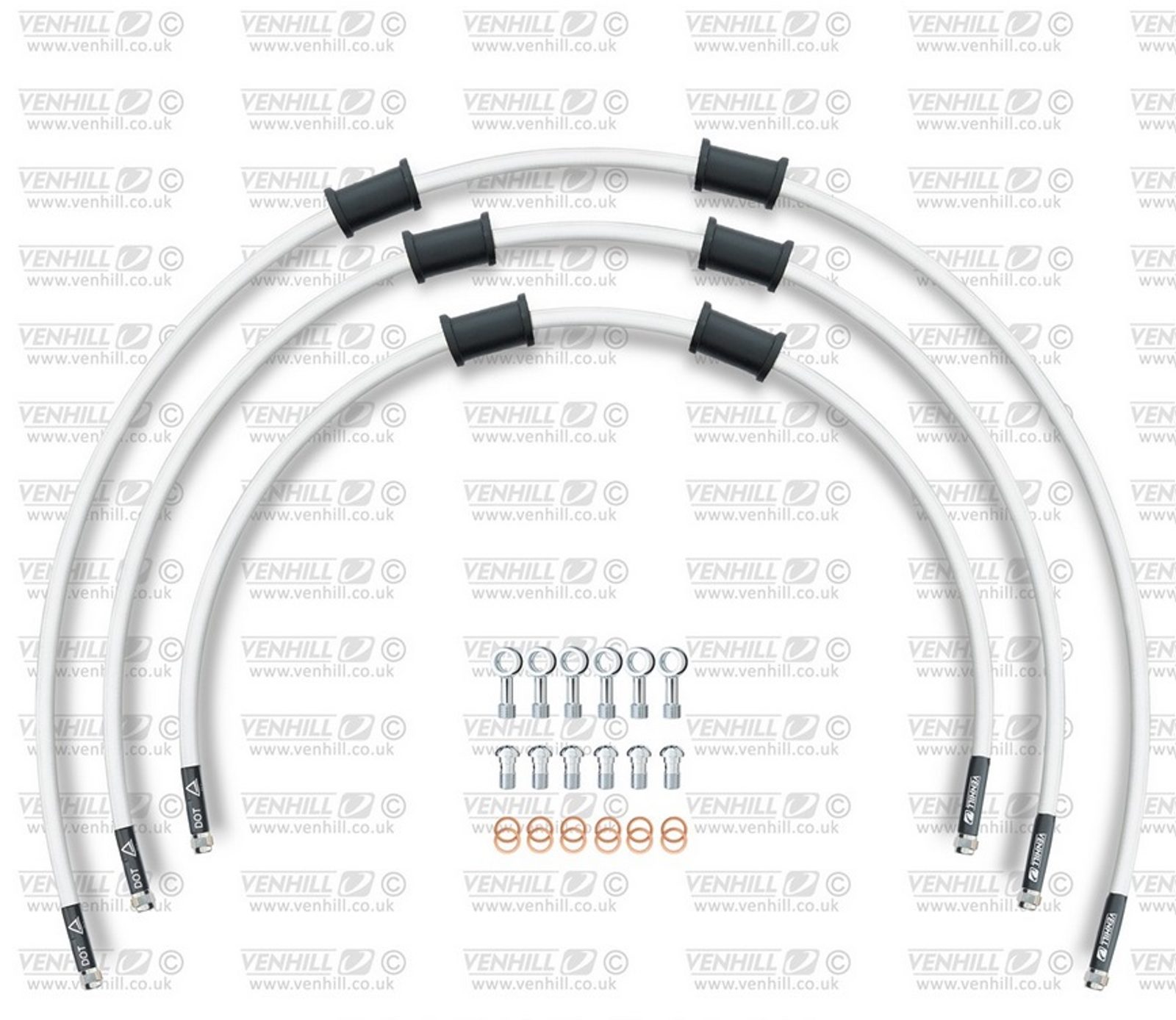 STANDARD Hadice přední brzdy sada Venhill POWERHOSEPLUS YAM-9004F-WT (3 hadice v sadě) bílé hadice, chromové koncovky