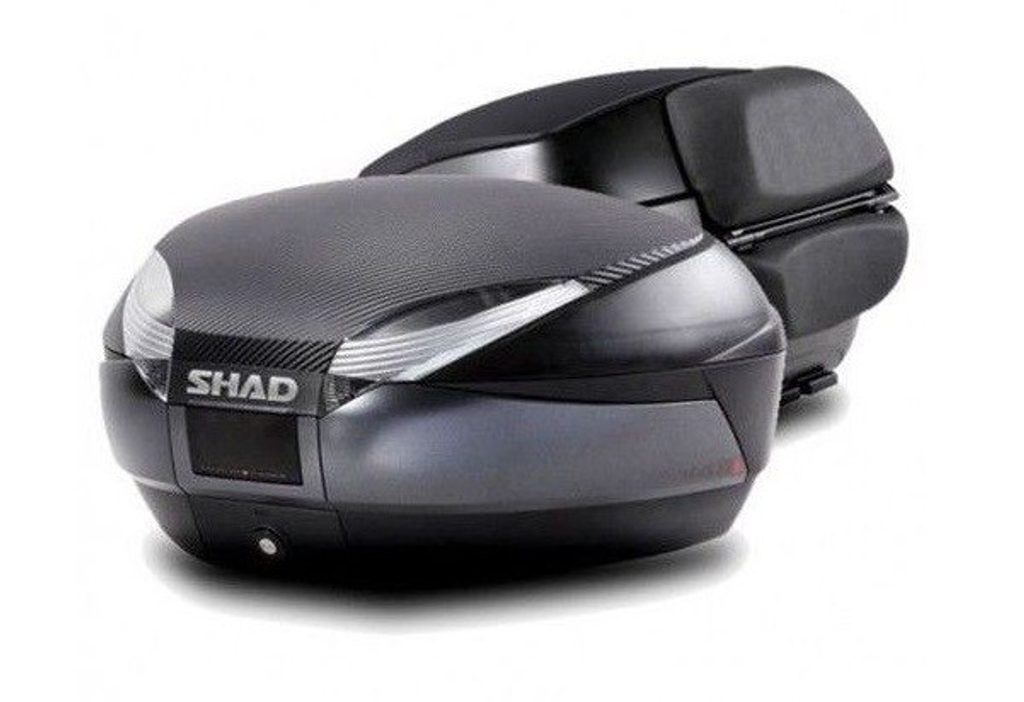Vrchní kufr na motorku SHAD SH48 D0B48306R Tmavě šedý s opěrkou, karbonový kryt a zámek PREMIUM SMART