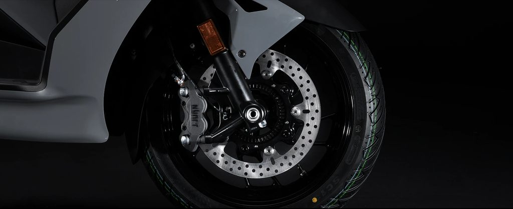 Systém odpružení, přední i zadní, byl vyladěn pro hladší chod a lepší tlumení nárazů, účinně zmírňuje drobné nerovnosti vozovky a poskytuje pevnou oporu na náročnějších površích. Tento systém, vybavený radiálně uloženými protilehlými čtyřpístkovými třmeny a zvětšenými brzdovými kotouči, zajišťuje stabilní a účinné brzdění s kratší brzdnou dráhou. Brzdová páka je standardně vybavena funkcí parkovací brzdy, která nabízí zvýšenou bezpečnost při dočasných zastaveních na svazích.