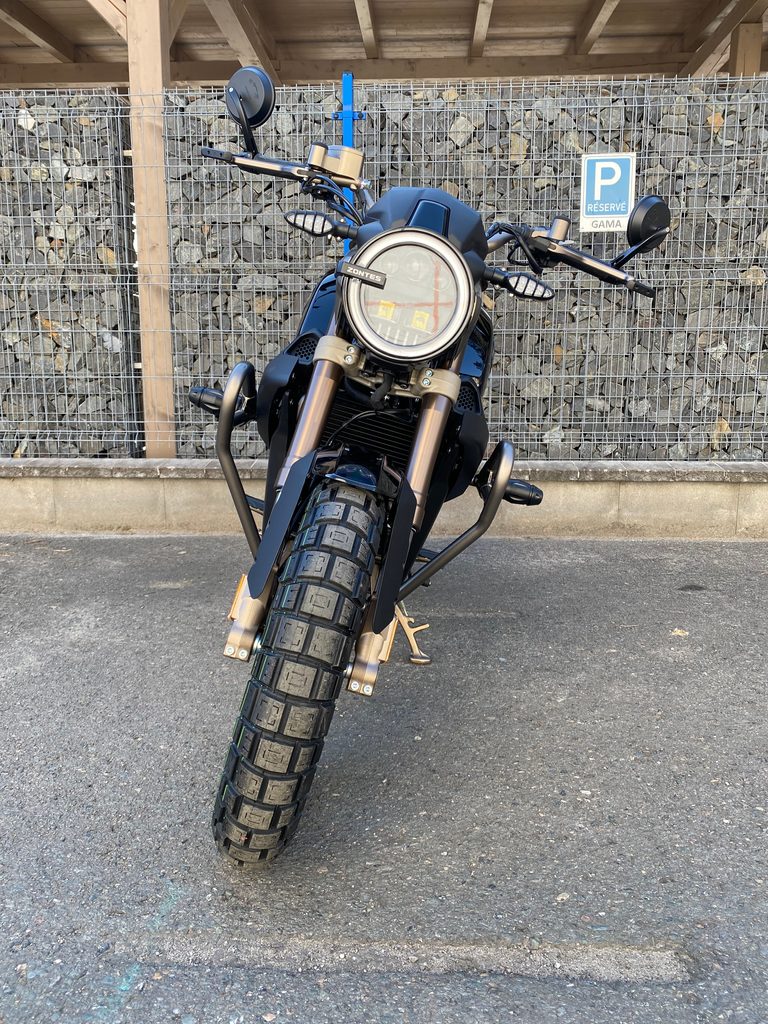 Nový retro Scrambler, který vám přináší příjemnější a dobrodružnější cestovní zážitek! Do výbavy patří velkokapacitní baterie, která poskytuje dostatečnou záruku pro startování v chladném počasí a využívání doplňků, jako je třeba USB nabíječka. Ta má dva USB porty a může dodávat vysoký proud 2,1A pro nabíjení dvou zařízení USB najednou. Samozřejmostí je kompletní LED osvětlení pro bezpečnou a přehlednou jízdu. LCD displej vám poskytne stručný a jednoduchý přehled o všech údajích. Díky válci motoru vyrobenému z čistého hliníku je vnitřní stěna válce tenká, takže teplo z válce je rychle odváděno pryč. Což přispívá k vyššímu výkonu. Galvanizovaná olejová nádrž zase zabraňuje ucpávání filtru oleje v důsledku rzi. Systém BOSCH ABS 9.1M umožňuje řidiči ovládat motocykl bez ohledu na to, jestli jedete v písku, dešti nebo sněhu. Systém ABS vám přinese jistotu. Široké ráfky lehkých kol z hliníkové slitiny a bezdušové Scrambler pneumatiky zajišťují dobrou pevnost a výdrž. Zesílená stěna pneumatiky, kterou nelze snadno prorazit; hlubší vzor, lepší přilnavost a schopnost jízdy v lehkém terénu umožňuje motorce libovolný provoz. Zadní centrální tlumič využívá vestavěný zásobník naplněný vysokotlakým dusíkem ke snížení teploty hydraulického oleje při tlumení. Sedlo jezdce a spolujezdce je spojené, radikálnější, a plné retro stylu. Jeho pohodlná výplň a potah zaručují příjemnější jízdu. Hliníková zadní kyvná vidlice díky kombinaci materiálů a speciálnímu procesu odlévání má nízkou hmotnost a dobrou tuhost. Do základní výbavy patří i padací ochranné rámy, které poskytnou ochranu jak motocyklu, tak jezdci. Stejně tak chrániče nastavitelných páček.