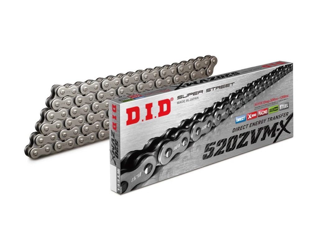 Řetěz D.I.D ZVM-X Series využívá patentované těsnění X-Ring®, které zajišťuje vyšší pevnost než řada VX a je určen pro silné motocykly s vysokým krouticím momentem a výkonem. Díky kroucenému tvaru X-Ring® těsnění lépe těsní a čtyři styčné body snižují ztráty výkonu.